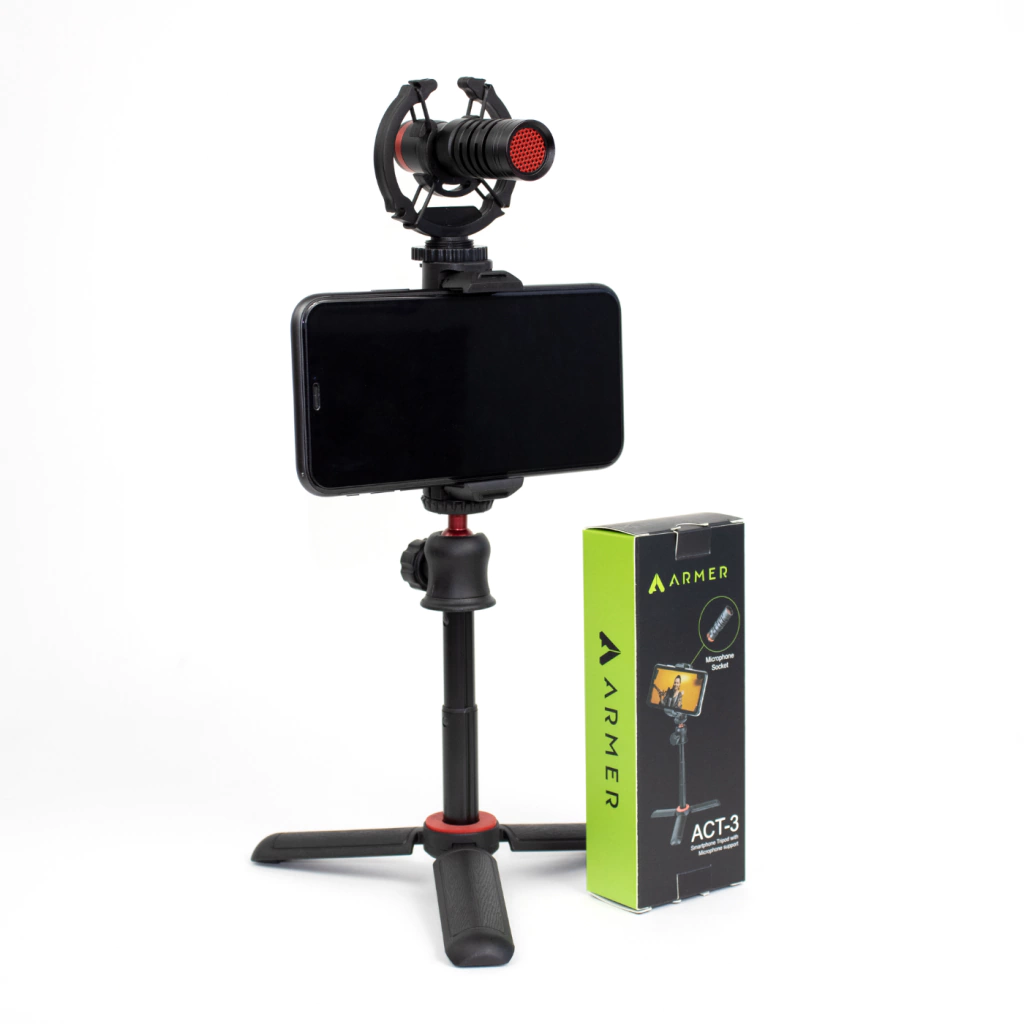 Nunca foi tão fácil fazer seus vídeos diretos no smartphone, e utilizar um microfone externo fixado junto com sua câmera! Tudo isso com a segurança e flexibilidade do Mini Tripé Armer ACT-3! Super portátil, desmontável, e ocupando o mínimo de espaço, esse acessório projetado pela Armer será um up grade na qualidade e produtividade de seu trabalho, hobby, ou lazer! Armer ACT-3!