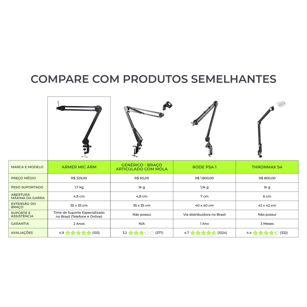 A Armer traz para você os melhores acessórios para microfone, garantindo qualidade, durabilidade e custo-benefício para quem busca um braço articulado para microfone profissional confiável.