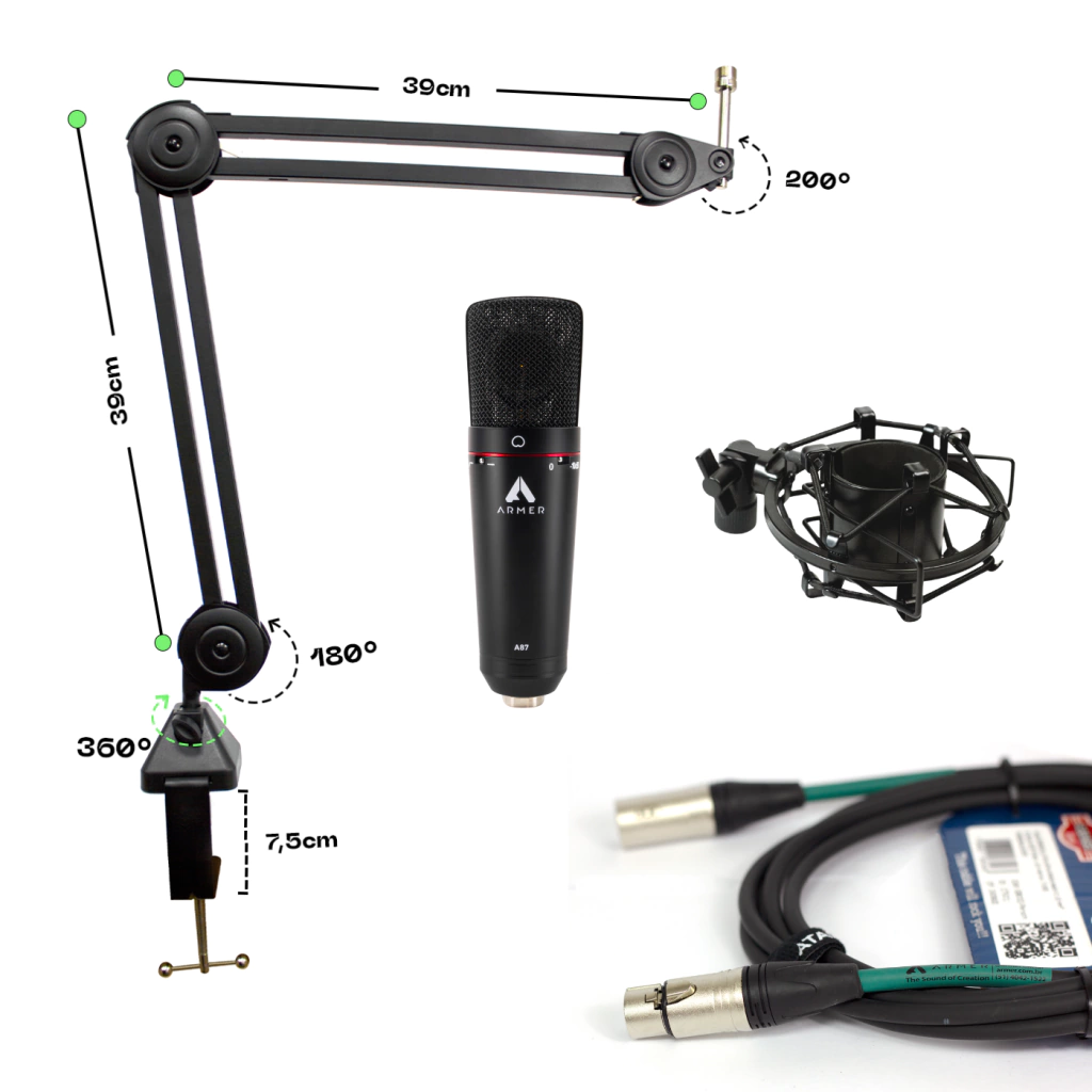 O Armer A87 é um microfone condensador de alto desempenho, projetado para entregar captação limpa, clara e extremamente detalhada. Ideal para gravações de voz, instrumentos acústicos, narrações e podcasts, é um dos modelos mais versáteis da linha Armer.