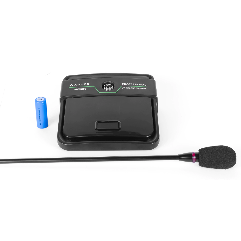Desenvolvido para atender as necessidades de igrejas, palestras, eventos corporativos, auditórios e salas de conferência, o Microfone de Mesa Sem Fio Gooseneck Armer GNW800 oferece uma combinação perfeita de desempenho e praticidade. Com alta autonomia de bateria, transmissão sem fio de longo alcance e captação de voz cristalina, ele é uma solução essencial para sistemas de som profissionais.