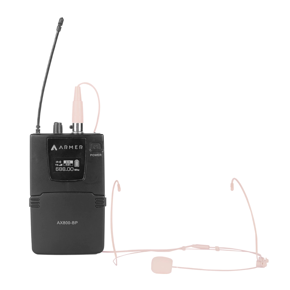 O Kit Headset + Transmissor Sem Fio Bodypack Armer AX800 foi desenvolvido para atender às necessidades dos profissionais mais exigentes. Com tecnologia UHF, oferece som nítido, livre de interferências, e estabilidade de sinal para suas apresentações, palestras, cultos, shows e eventos.
