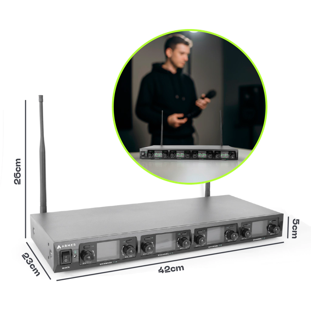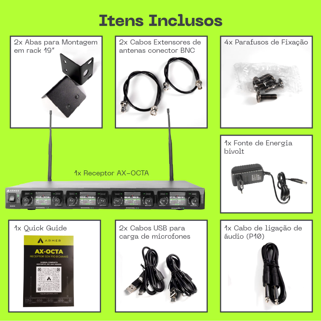 O Receptor Sem Fio Profissional Armer AX OCTA G2 é a solução definitiva para quem busca áudio sem fio de alta performance, seja para eventos ao vivo, igrejas, plenários, palestras, gravações, ou sistemas corporativos de sonorização.