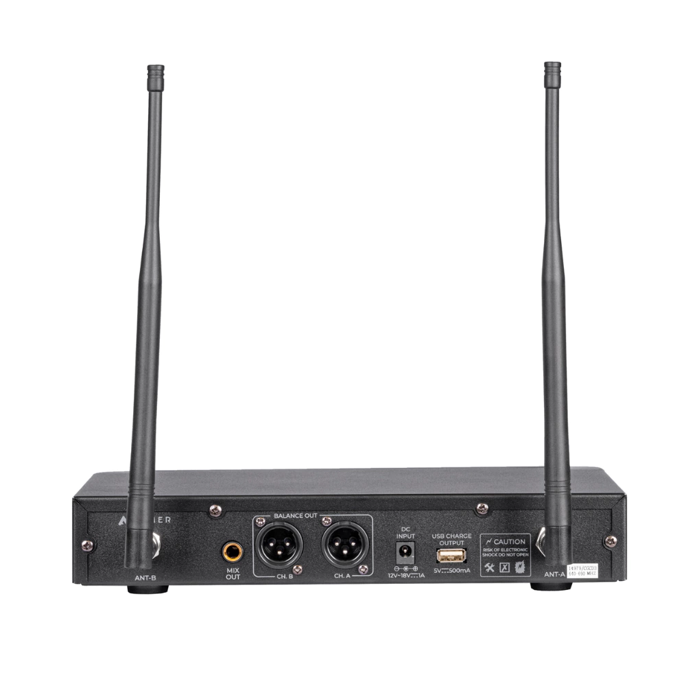 Além do headset, o microfone sem fio de mão do AX802MH oferece captação supercardioide, garantindo áudio limpo e sem ruídos indesejados.