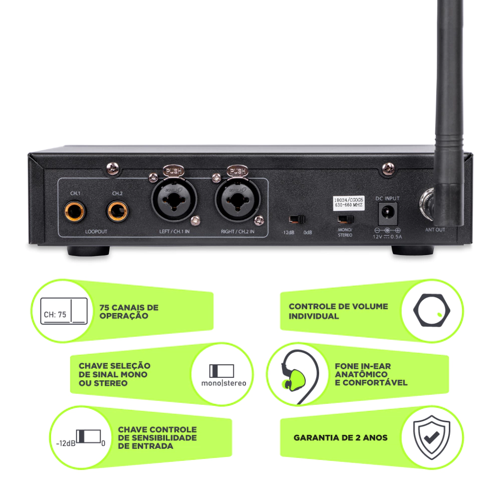 ✅ Monitoramento in-ear com alcance e clareza incríveis.