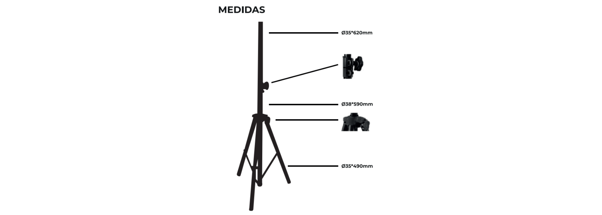 Com altura ajustável entre 60cm e 1,25m, ele foi pensado especialmente para apresentações em espaços menores, monitoramento de palco, uso doméstico, igrejas e eventos com caixas posicionadas mais próximas ao chão.