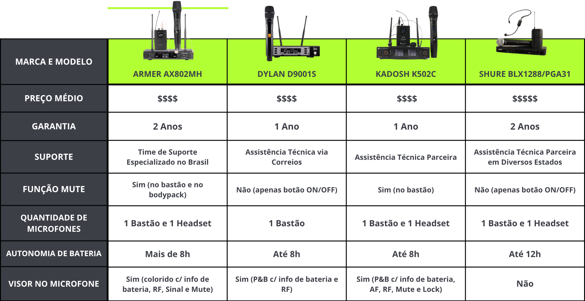 Abaixo você pode conferir um comparativo os principais concorrentes/produtos alternativas ao AX801M.