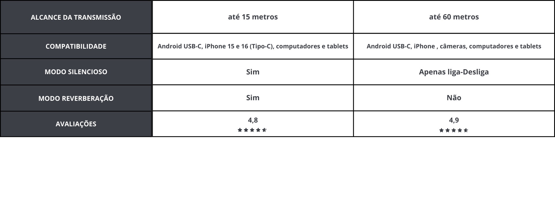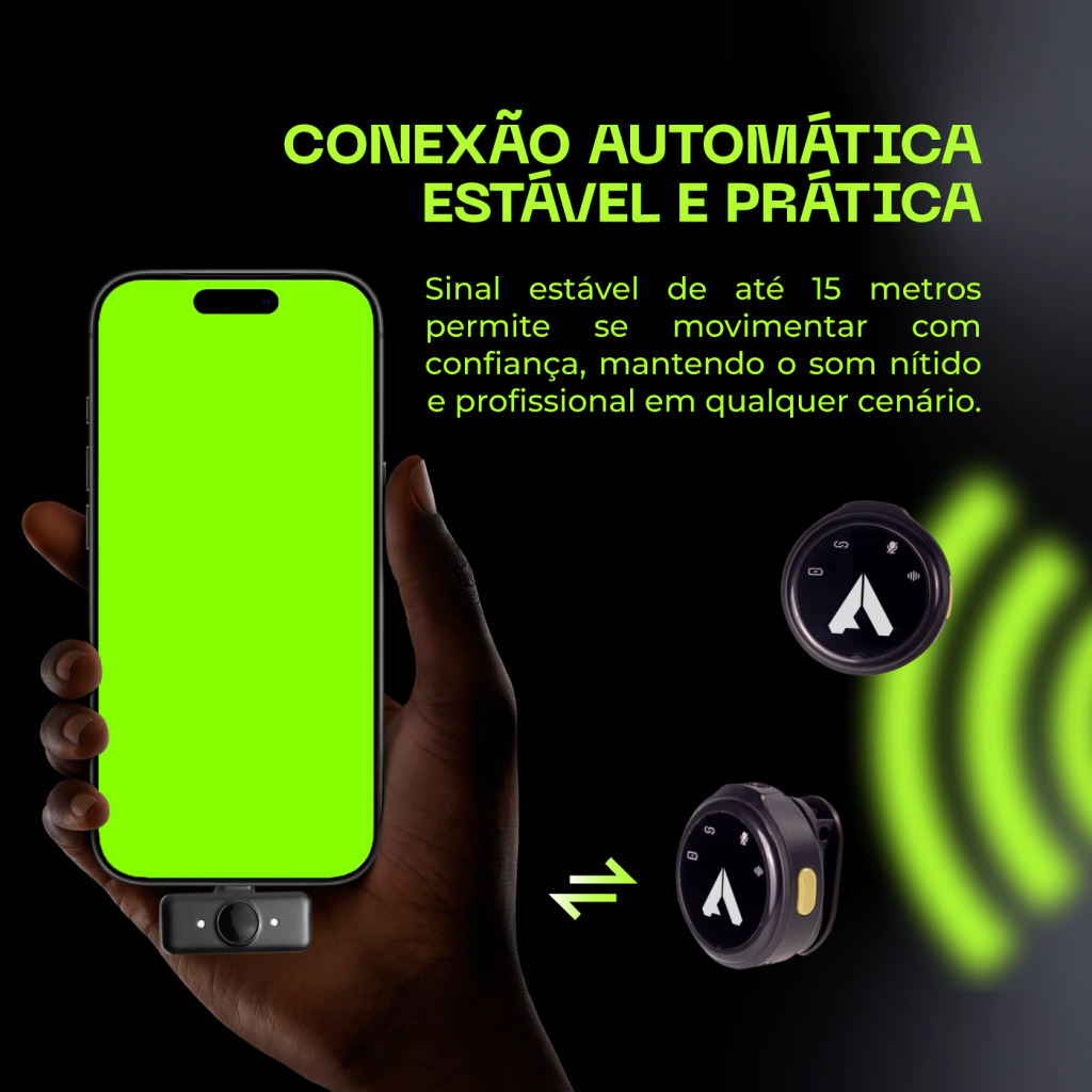 Transmissão estável até 15 metros em ambiente aberto.